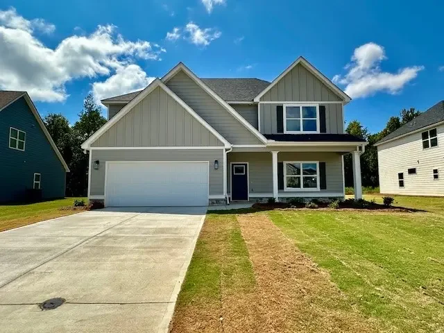 The OVERTON PLAN features entry foyer leading to beautiful Dining Room featuring detailed trim-work accent. Open Family Room w/woodburning fireplace featuring brick or stone surround. The over-sized Kitchen features shaker styled cabinets, granite or quartz counters, designer selected tile backsplash, and Stainless Electric Range/Oven, Dishwasher, and Microhood. Upstairs, you'll find the Large Owner's Suite w/sitting area and a luxurious tiled bathroom with double vanity boasting quartz or granite counters, garden tub, and separate tiled shower. The owner's closet is HUGE! Three guest rooms w/vaulted ceilings and a shared bathroom. Mohawk Redwood flooring in much of the main level common area and tiled flooring in bathrooms. Smooth ceilings throughout, pre-wired and braced for fans in guest rooms. FOAM INSULATED ATTIC, Fiber Cement Siding, Architectural Shingled Roof, and Rear Covered Patio. Mins from Historic Downtown Opelika. Up to $6,500 in CC Assistance!