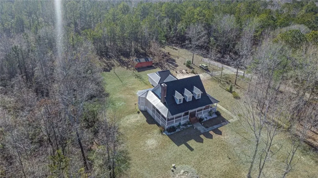 Searching for a small farm, away from the hustle and bustle but still convenient to Auburn University, schools, and shops? This carefully maintained property is just the place! On nearly 7 acres, the farmhouse is set back on a long driveway. The wraparound porch seamlessly blends the indoors with the wide-open outdoors. Through the front door, you are greeted with the semi-open concept great room and dining room, complete with hardwood floors and a woodburning fireplace. The kitchen includes a breakfast area, ample counter space, updated appliances and a lovely view of the property from every window. The main level primary suite offers access to the porch, hardwood floors, a walk-in closet and large ensuite bathroom. Upstairs is a loft or bonus space, two additional bedrooms and a shared hall bathroom. There is a detached oversized garage and workshop. The property offers some clearings but includes a wooded privacy perimeter - the possibilities are endless!