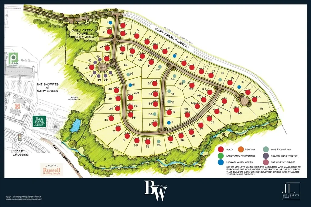 Bridgewater Homeowners Association. Lots open for purchase but owners must use an approved builder. See www.bridgewateratcarycreek.info for more information.