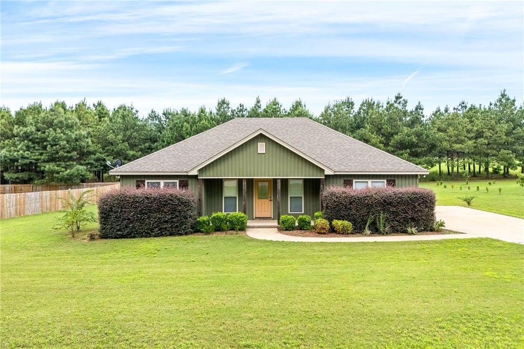 Welcome to 5971 Cherokee Trail, a beautifully maintained home offering a perfect blend of comfort, style, and functionality in the heart of Tallassee. Step inside to discover a light-filled, open-concept layout with gleaming hardwood floors flowing through the main living areas. The spacious living room, complete with tray ceilings and a ceiling fan, provides a welcoming atmosphere for relaxing or entertaining. The kitchen is a true highlight, featuring rich wood cabinetry, stainless steel appliances, subway tile backsplash, and a large center island perfect for meal prep and gathering. A separate dining area with a modern farmhouse-style light fixture completes the space. This home offers multiple bedrooms with neutral tones, plush carpet, and large windows that fill each room with natural light. The primary suite is a private retreat with a tray ceiling, a generous walk-in closet, and an en-suite bathroom showcasing a double vanity, granite countertops, and a shower/tub combo. Additional bedrooms are versatile and well-sized, perfect for guests or a home office. Outside, you’ll enjoy the charming curb appeal with a covered front porch and a spacious backyard with plenty of room for outdoor living, entertaining, or play. Conveniently located just minutes from local schools, shopping, and dining, this home offers both privacy and accessibility.