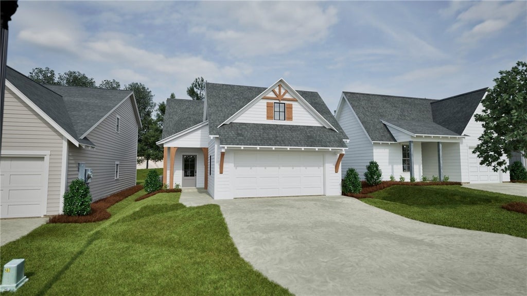 Completion in March 2026! Welcome to the Hampton B floor plan! The Hampton B features four bedrooms, two and a half bathrooms and spans across 1,535 square feet. The front of the home features a covered front porch and two car garage. As you make your way into the home, you enter into the foyer with a drop zone and powder bath leading into the living room that features vaulted ceilings. The open concept living area flows seamlessly into the kitchen and dining. Beautiful windows in the dining area create a warm and inviting space. The primary bedroom and en suite is privately tucked away. Bedrooms two, three and four rest towards the back of the home along with the laundry room and full bathroom.