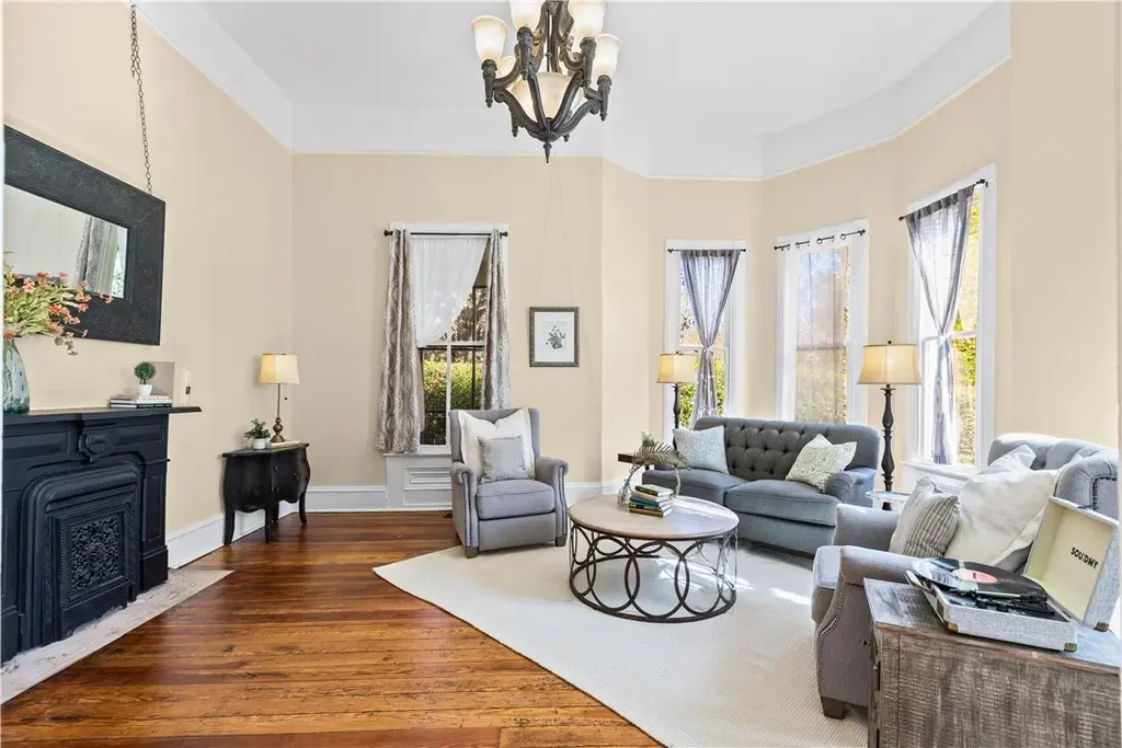 Nestled in the heart of historic Opelika, just a stroll from downtown & the new Floral Park, this 1894 Queen Anne-style Victorian is a rare architectural treasure! Behind its turreted facade and decorative bargeboard gable lies a beautifully preserved 4-bed, 2-bath home filled w/warmth, craftsmanship & character. A dramatic curved concrete stairway leads to a hand-carved front door & series of inviting foyers. Inside, 14-foot ceilings, plaster walls & original picture molding set the tone, while eighteen 84-inch windows w/wavy glass fill the home with light. Transoms, nearly one-foot baseboards and hand-carved trim blocks—incl symbolic starburst motifs—enhance the home’s rich period detailing. Four preserved coal-burning fireplaces reflect its authentic 19th-century charm (decorative only). Thoughtfully remodeled kitchen (2012) blends historic & modern function: custom cabinetry, Silestone quartz countertops, soft-close drawers, schoolhouse lighting & young appliances (incl dbl oven, fridge, w/d). Both bathrooms have been updated with care—the owner’s bath showcasing a striking 1927 clawfoot tub, lantern tile, marble-top vanity plus the delicately revealed original chimney—a striking architectural accent! Generous closets, built-in storage, vintage Sears Roebuck shed and even hand-hewn timber beams beneath the structure, this one-of-a-kind home is a rare opportunity to own a beautifully adapted piece of Opelika’s history! Outside, the property as a whole unfolds like a secret garden, with nearly 1/2 acre of lush, level grounds. The fenced backyard offers a serene natural canopy that feels worlds away—so tranquil, you may forget you're in the heart of the city. Architectural roof 2013. Young appliances! Most plumbing supply/drain lines (incl gas) updated w/in the last 10 yrs! Electrical updated to breakers! Water heater 2025! Exterior painted (trim 2024, siding 2025)! 2/3 of hardwood floors professionally refinished 2025! Please ask for many more details!!