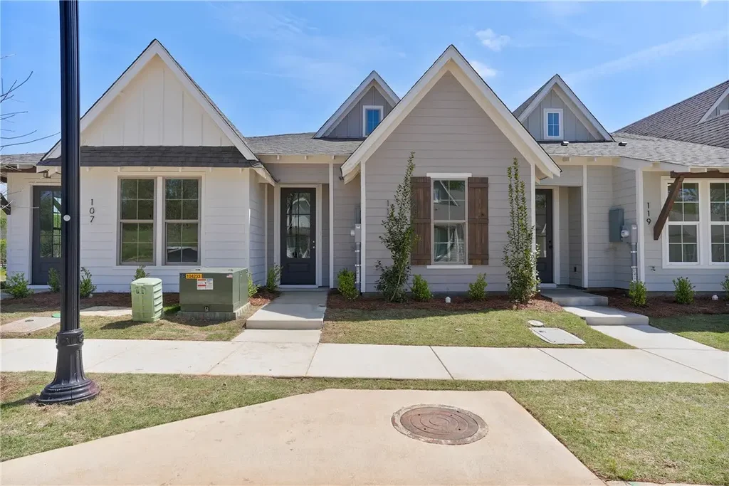 MARCH 2026 CLOSING AVAILABLE! This townhome is an interior two bedroom, two bath home comprising of 1,184 square feet. The covered front entry leads you inside the foyer with the guest bedroom and bathroom access. Past the foyer, is the dining area off of the kitchen. The kitchen extends into an open concept living area that features vaulted ceilings. The kitchen boasts stainless steel appliances, granite countertops and custom designed wooden cabinets. There is ample room for storage with an attached pantry and closets lined with wire shelving in both bedrooms and laundry room. Down the hall is the primary bedroom with ensuite and closet accessed from the bedroom. Future amenities to include swimming pool, clubhouse, pickle ball courts, playground, bocce ball, community garden, dog park, walking trail, wiffle ball field, and green space.
