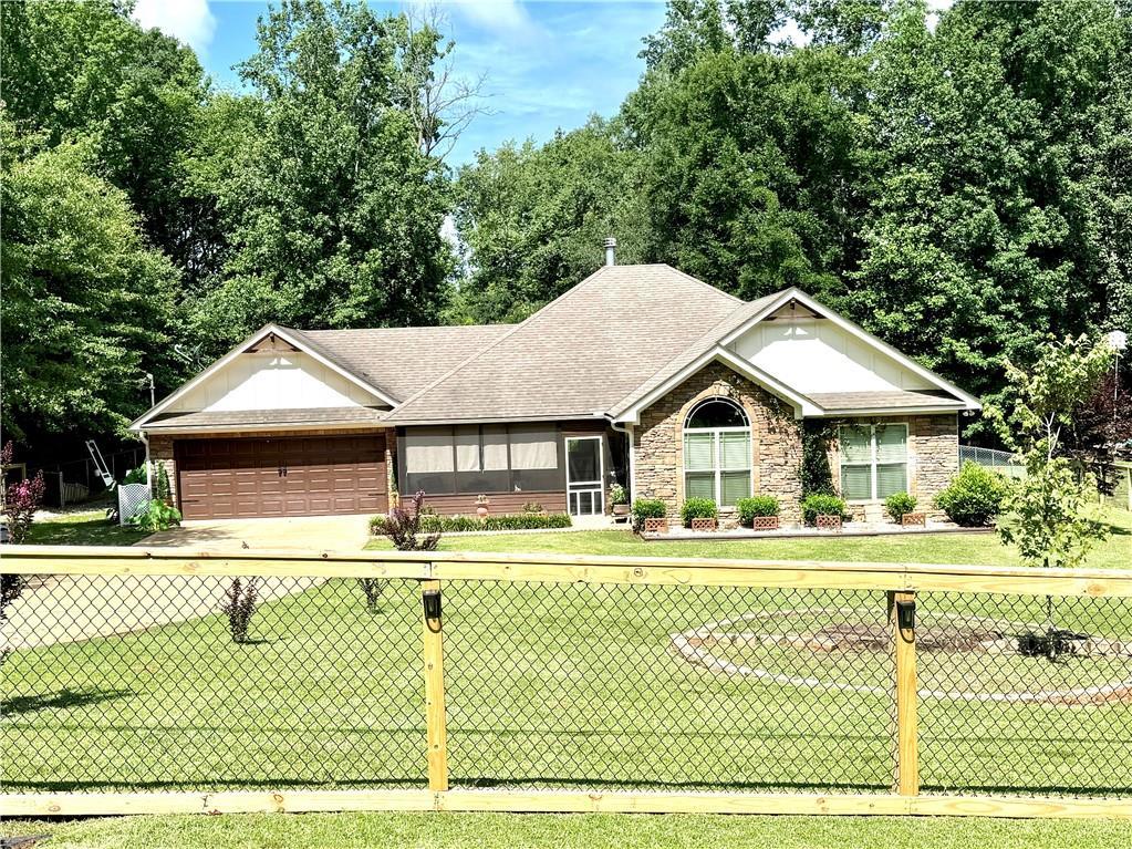 Sweet Home Alabama Welcome home to an updated and well maintained unique gem on a quiet road in Lee County, Alabama. You will enter the fully fenced in property through a remote controlled electronic gate to find a blend of comfort, functionality and down home southern charm. As you step through the screened in font porch and walk inside the front door and you will immediately be drawn to the open concept living area, with 9' tray ceilings with crown molding, freshly painted neutral walls and hardwood floors. Open concept kitchen with large island featuring quartz counter tops and solid wood cabinets. Peek around the massive stone wood burning fireplace and you will be in a light filled multi functional room that can be used for dining overflow or library/reading room, a children's playroom or whatever you dream it to be. We walk out here to a screened in sunroom with Coolaroo blackout shades, this space is large enough for entertaining. Sitting back with a sweet tea or napping on a lazy afternoon, this space looks out to a salt water pool with plenty of deck space installed only 2 years ago. Beyond that stands a fully functional electric workshop with covered patio. This property also has a second storage shed for lawn equipment. This property is completely fenced in and filled with mature trees and shrubs, a complete and calming oasis of a southern lifestyle. Back inside we have a very generous primary bedroom with walk in closet, double vanity, jetted garden tub and separate walk in shower. Bedroom 2 features vaulted ceiling, freshly painted walls and large windows. Bedroom 3 is of ample size and freshly painted and close to main full bathroom and laundry room. -Extra feature: attic and all outer walls have spray foam insulation, that cuts down on the power bill. -A/C unit 2021 -Water heater 2021 -2 car garage with attic access for storage. -Schedule your private showing today.