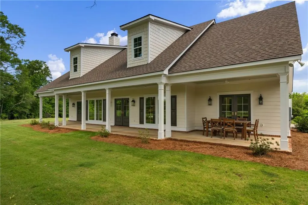 Welcome to this stunning custom-built home offering the perfect blend of luxury living and country charm. Situated on over 50 acres of pasture and mixed hardwoods. Paddocks are enclosed with 4-board fencing and include multiple run-in sheds—ideal for horse lovers and those seeking wide open spaces. Inside, you'll find 3 spacious bedrooms, 3 full bathrooms, and a half bath, all thoughtfully designed with high-end finishes. The chef’s kitchen is a culinary dream, featuring premium appliances, custom cabinetry, and a large island that seamlessly flows into the open family room, perfect for entertaining or relaxing by the fire. The primary suite is a true retreat with fireplace French doors and automatic window shades as well as a spa-like bathroom, including a soaking tub, walk-in shower, and dual vanities. Hardwood floors flow throughout the home, adding warmth and timeless appeal. Enjoy serene mornings and sunset evenings on the expansive wrap-around porch, taking in views of the picturesque landscape and grazing horses. Whether you're an avid equestrian, hobby farmer, or simply looking for a peaceful getaway, this one-of-a-kind property delivers the space, style, and serenity you've been dreaming of. Only minutes to shopping and JR Allen Parkway